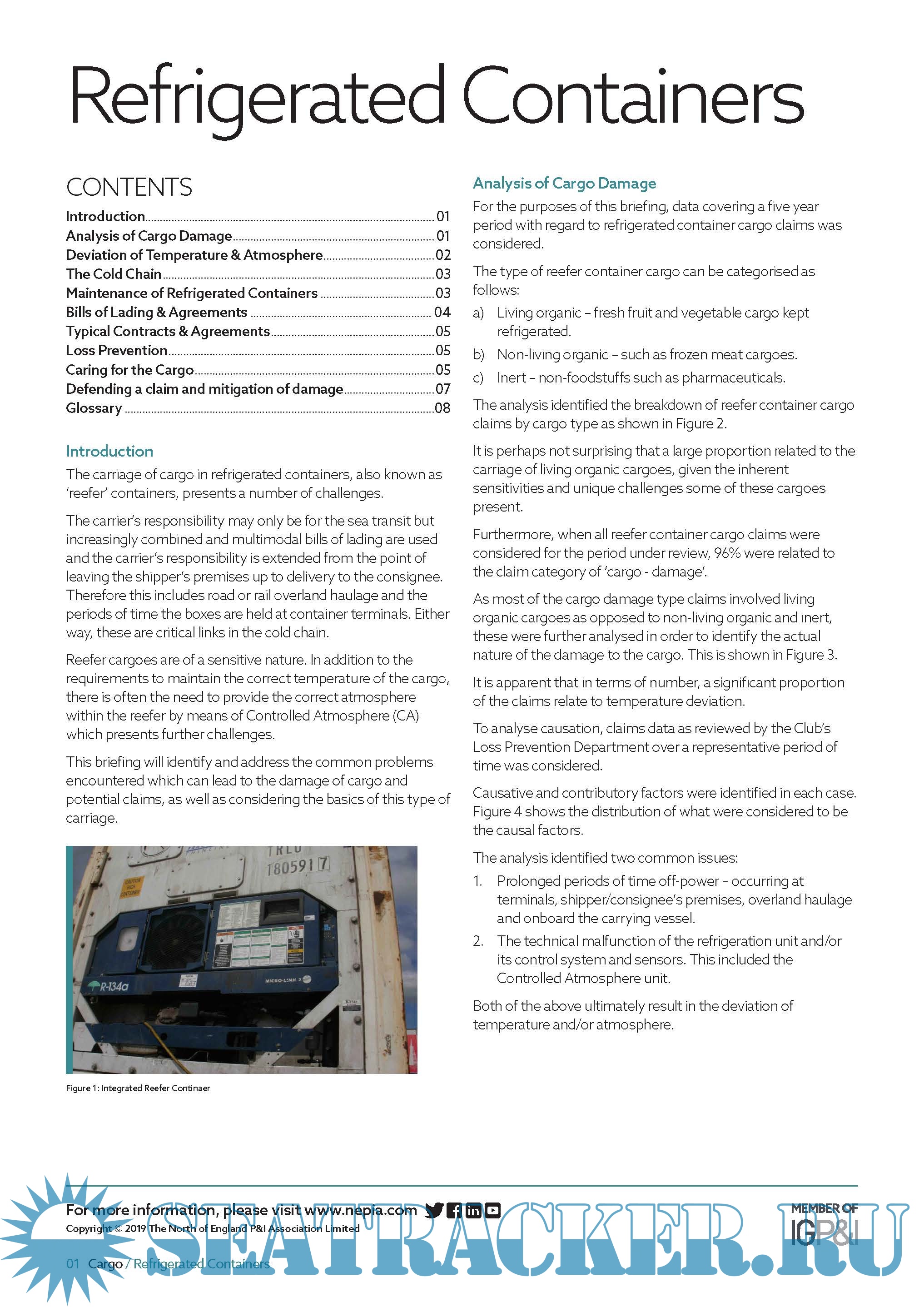 Year: 201x Language: english Author: the North Genre: Practical guide Format: PDF Quality: eBook Pages count: 9 Description: The carriage of cargo in refrigerated containers, also known as ‘reefer’ containers, presents a number of challenges. This paper will identify and address the common problems encountered which can lead to the damage of cargo and potential claims, as well as considering the basics of this type of carriage.