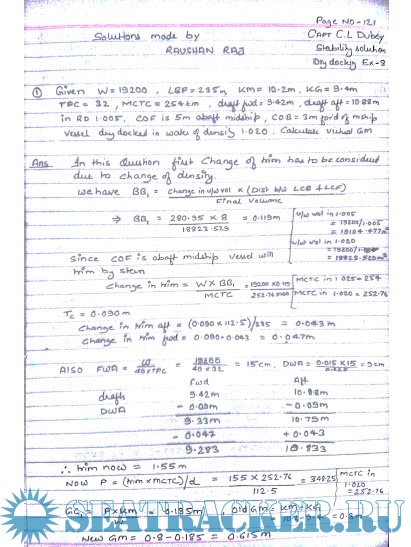 Phase I Ship Stability - Capt. C.L.Dubey book Exercise & Past Papers Solution of Mercantile Marine Department (MMD), India Examinations
