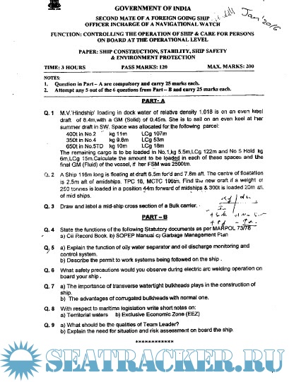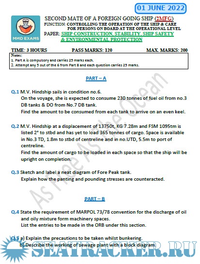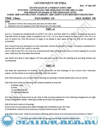 Question Paper Set for Ship Construction, Stability Ship Safety and Environment Protection (July…