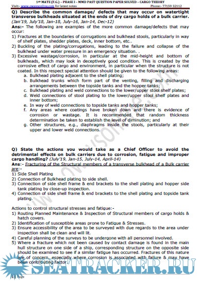 Phase I Cargo Work - Solved Theory (2020~2012) from Past Question Papers of Mercantile Marine Department (MMD), India Examinations