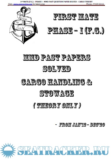 Description: Phase I Cargo Work - Solved Theory (2020~2012) from Past Question Papers of Mercantile Marine Department (MMD), India Examinations.