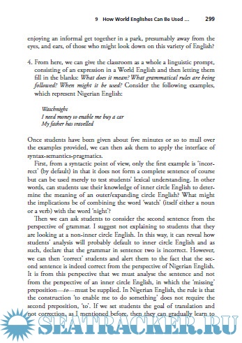 Year: 2020 Language: english Author: Alex Baratta Publisher: Palgrave Macmillan Edition: 1st ISBN: 978-3030132880 Format: PDF Quality: eBook Pages count: 322 Description: This book provides an in-depth exploration of World Englishes and their place in the English as a Foreign Language (EFL) classroom. It opens with a critical assessment of the research to date that includes analysis of competing and complementary terms such as English as an International Language (EIL), Global English, English as a Lingua Franca (ELF) and 'Glocal English'. Here, and throughout the work, the author problematizes the terminologies used to define and describe Englishes, arguing for example for the need to distinguish between Chinglish and China English. The book then turns to an examination of three case study varieties of non-inner circle English: Konglish, Singlish and Indian English; before exploring the results of an original empirical study into language attitudes concerning several varieties of English among language teachers and learners. Finally, sample exercises for the classroom are provided. This book will be of particular interest to language teachers and teacher trainers, and to students and scholars of EFL and applied linguistics more broadly.