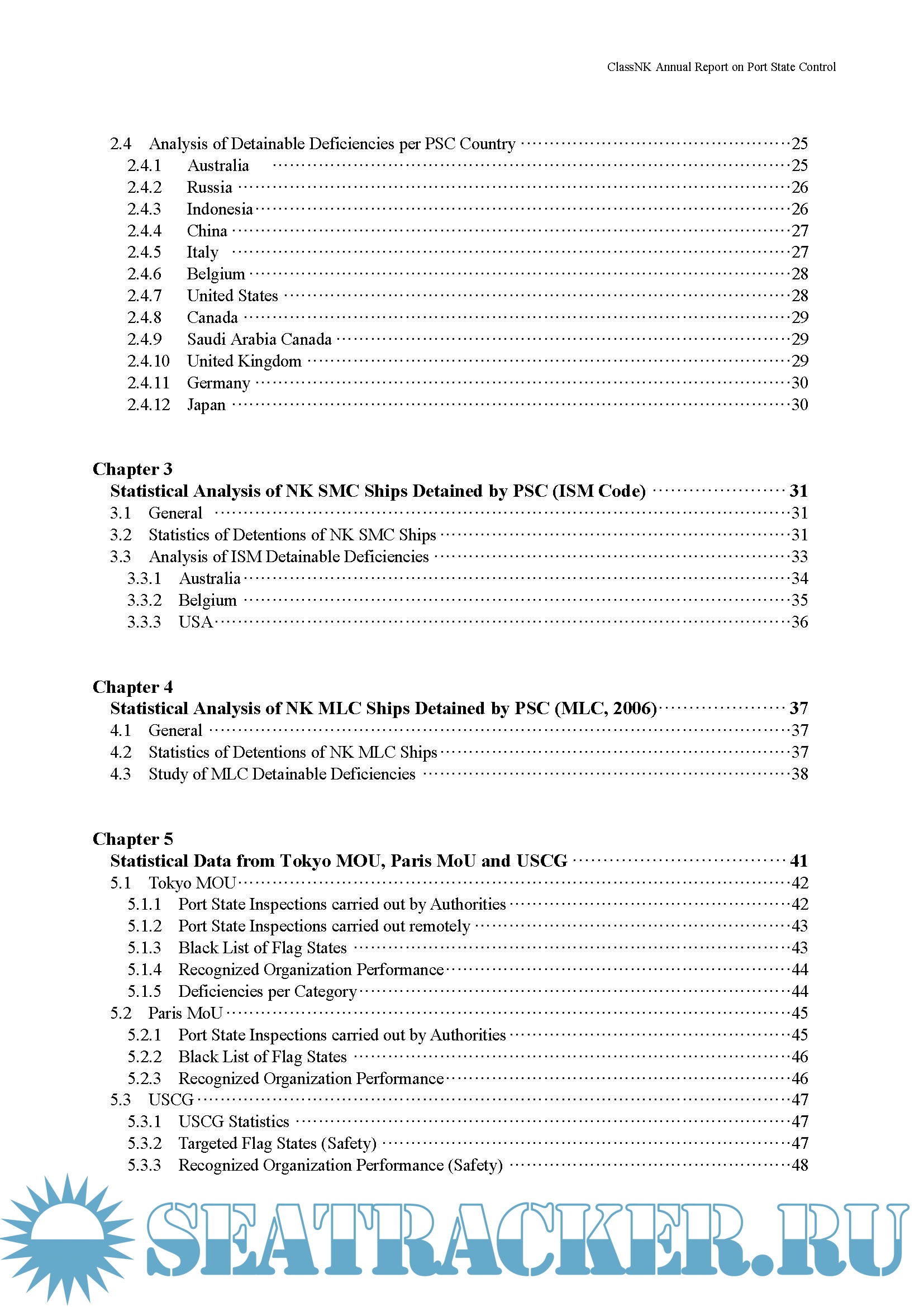 Description: This Annual Report on Port State Control (PSC) summarizes deficiencies identified during PSCinspections carried out in various countries around the world. This report is prepared with the objective ofbuilding awareness of the present state of PSC and thereby improving future onboard maintenance andinspections as well as Safety Management Systems.