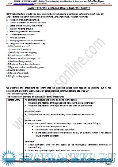 Year: 2019 Language: english Author: Unknown Publisher: Oways Online Format: PDF Quality: eBook Pages count: 47 Description: Chief Mates (F.G.) Phase II Subject: Bridge Watchkeeping, Ship Handling and Emergencies Solved (2021-2019) from Past Question Papers of Mercantile Marine Department (MMD), India Examinations for Phase II (Chief Mate F.G.)