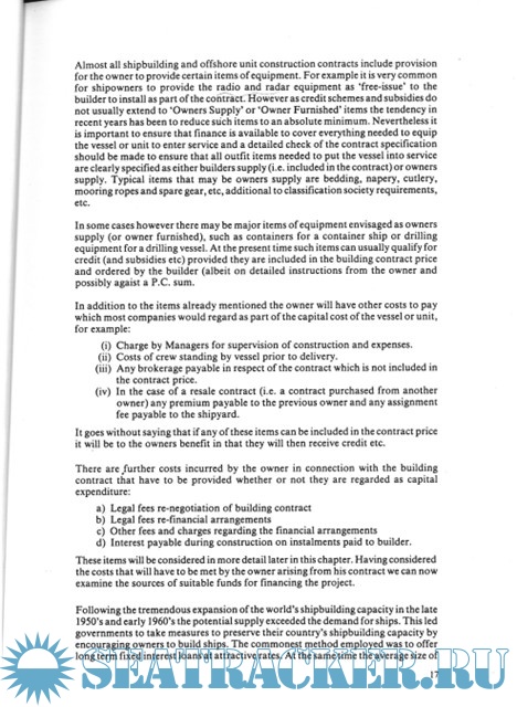 Year: 1984 Language: english Author: Sloggett, Jolyon E. Genre: Textbook Publisher: Fairplay Publications Ltd, Coulsdon, Surrey CR5 2HR, United Kingdom Edition: First ISBN: 978-09-0-504569-6 Format: PDF Quality: Scanned pages Pages count: 126 Description: Ships have always represented a major capital investment for their owners. As a consequence of the requirement for large funds, the concept of shared ownership of ships, predated the joint-stock company by several hundred years. Until the advent of the steamship in the 1840, ships were usually owned by the merchants whose goods they carried, but the coming of steam saw the rise of shipowning as a separate business, based on finance raised through joint stock companies. Ocean going ships are now owned by companies and some knowledge of the financial operations of companies is necessary for anyone studying the financial aspects of shipowning. The book concerns itself more with the method than the philosophy of financing ships and mobile offshore installations, and with that limitation, it is recommended as a required reading for both shipowners and shipping financiers. Shipping financiers, by combining the study of this book with a study on “Maritime Liens”, they will be in a position to thoroughly know just how strong, or how fragile, their security and their mortgage is. Additional info:2nd Edition (1998) https://seatracker.xyz/viewtopic.php?p=86819#86819