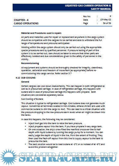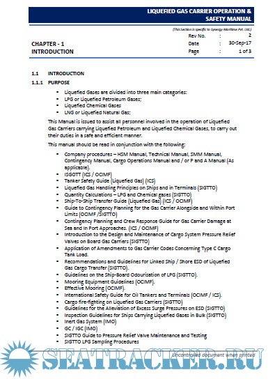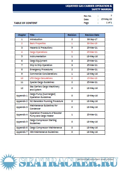 Description: This Manual is issued to assist all personnel involved in the operation of Liquefied Gas Carriers carrying Liquefied Petroleum and Liquefied Chemical Gases, to carry out their duties in a safe and efficient manner.