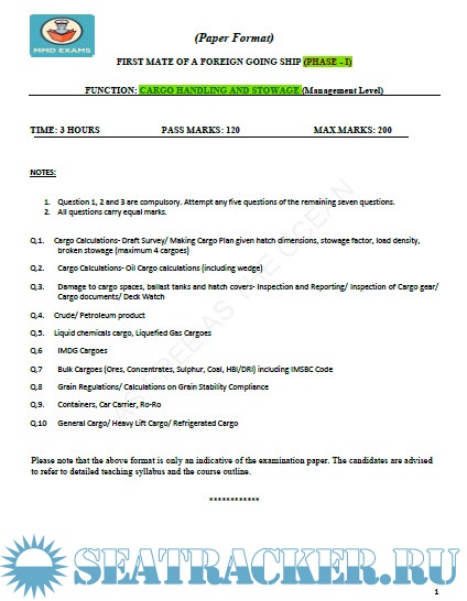 Phase I - Chief Mate (F.G.) question paper sets for Mercantile Marine Department (MMD), India Exams.