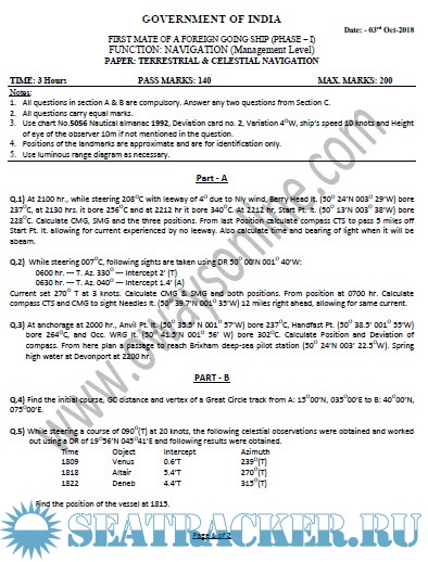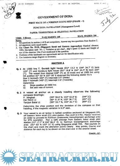 Question Paper Set for Phase I (Chief Mate F.G.) Mercantile Marine Department (MMD), India…