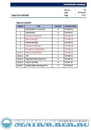 Description: The Contingency Manual provides guidelines and instructions that assist in making an efficient response to emergency situations onboard ships.