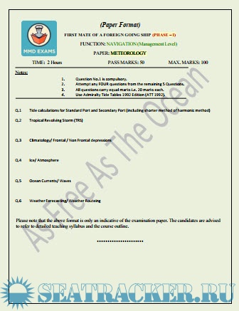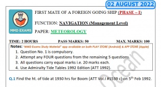 Question Paper Set for Meteorology (August 2022) for Phase I (Chief Mate F.G.) Mercantile Marine Department (MMD), India Examinations