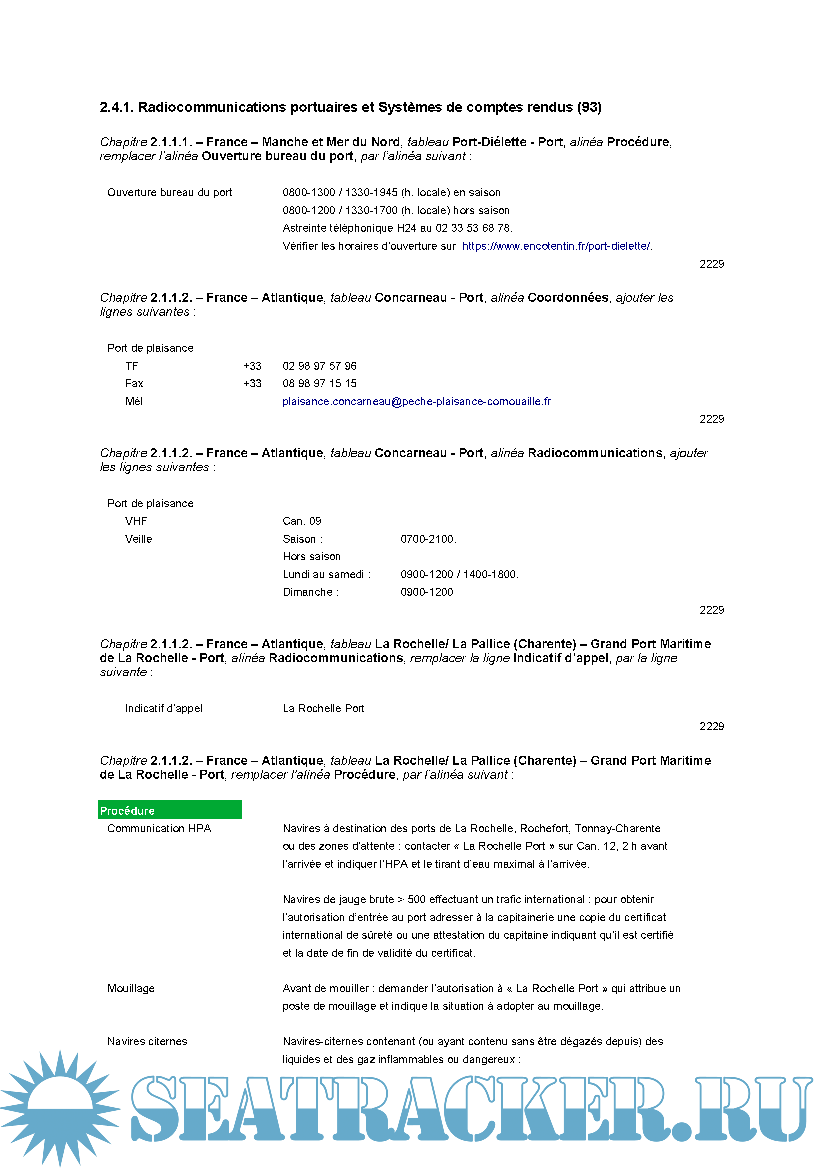 Description: SHOM Notices to Mariners with correct RNC (BSB/kap).