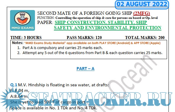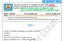 Question Paper Set for Ship Construction, Stability Ship Safety and Environment Protection (August 2022) for Second Mate (F.G.) Mercantile Marine Department (MMD), India Examinations