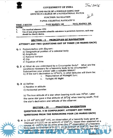 2nd Mate (F.G.) question paper sets for Mercantile Marine Department (MMD), India Exams.