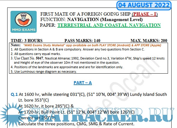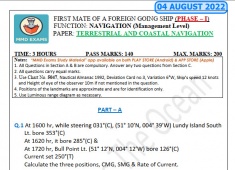 Question Paper Set for Terrestrial and Celestial Navigation (July 2022) for Phase I (Chief Mate…