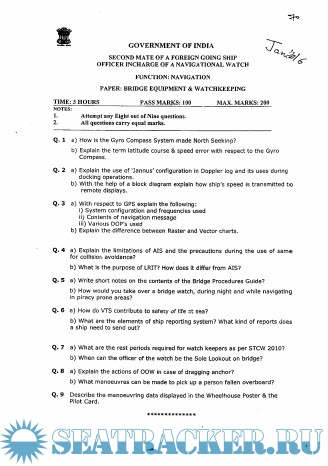 Question Paper Set for Second Mate (F.G.) Mercantile Marine Department (MMD), India Examinations -…