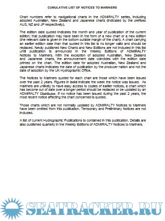 Description: The Cumulative List of ADMIRALTY Notices to Mariners (NP234 A) can help you to identify outstanding NMs and audit trails for a particular chart or charts.
