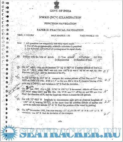 Question Paper Set for Practical Navigation (June 2022) for NWKO (NCV) Mercantile Marine Department (MMD), India Examinations