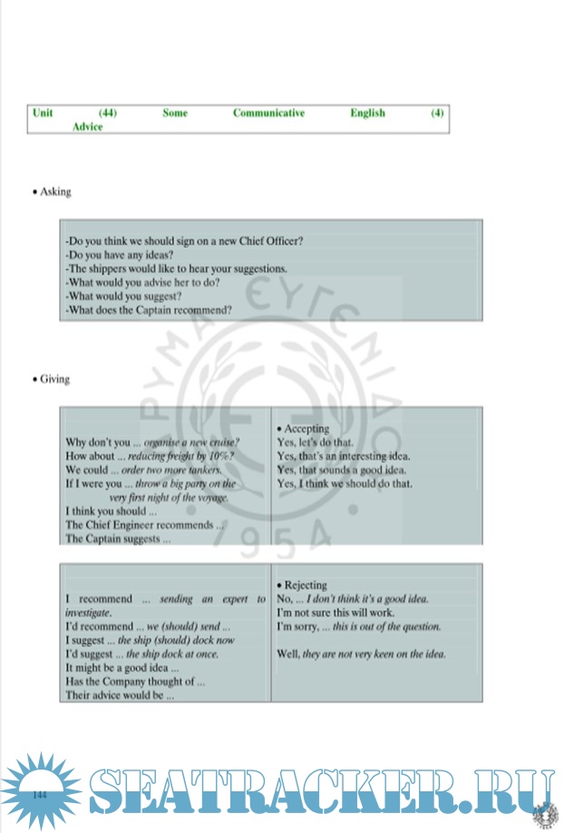This publication is scheduled to present the grammar phenomena of the English language, while at the same time provide the scientific jargon that is pertinent to deck and engineer cadets of the Merchant Marine Academies, according to the directives for maritime training of the IMO.