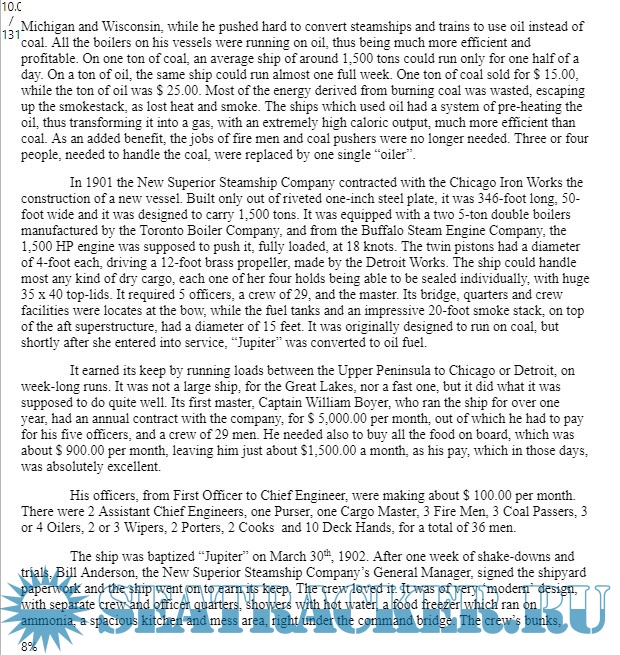 Description: "Jupiter: The Ghost Ship" is a short trip into the past, examining the life and work of a Great lakes dry cargo ship, built in 1901 and scrapped in 1970, the Jupiter. Over seven decades of sailing the Great Lakes, she had several owners and a lot more officers and crew members, each one of them with their own dreams and aspirations, laboring hard on water routes. This ship carried various commodities between the ports of call, from coal, iron ore, bauxite, sand, gravel, and grains to livestock and manufactured goods. Surviving all the economic changes brought about by two World Wars and a Depression, this ship went through a slow process of modernization, first changing from coal to oil-fuel, later from steam to Diesel power. After the radio and radar introduction, this ship was able to haul her cargo through fog and dark nights at profitable speeds, keeping everybody on board in paychecks. The captain was not the most important person on board. The cook was! The ship's involvement in disputes with the labor unions, and the schemes devised to avoid conflict, gained her the name of "Ghost Ship". Constantly chased by someone, be it the International Mariners' Union, or the Coast Guard the ship was so elusive in its sailing, that the frustration of her enemies just about reached a boiling point. The history of the "Jupiter", put together by substantial research into the maritime archives, museums and newspapers of that period, can offer the reader a unique perspective upon many facts ignored by history. Thank you for sailing with the author, on the "Jupiter"!