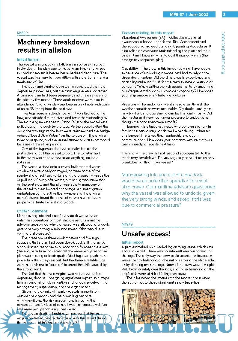 the quarterly CHIRP Maritime Feedback (MFB) Issue June 2022 Volume 67
