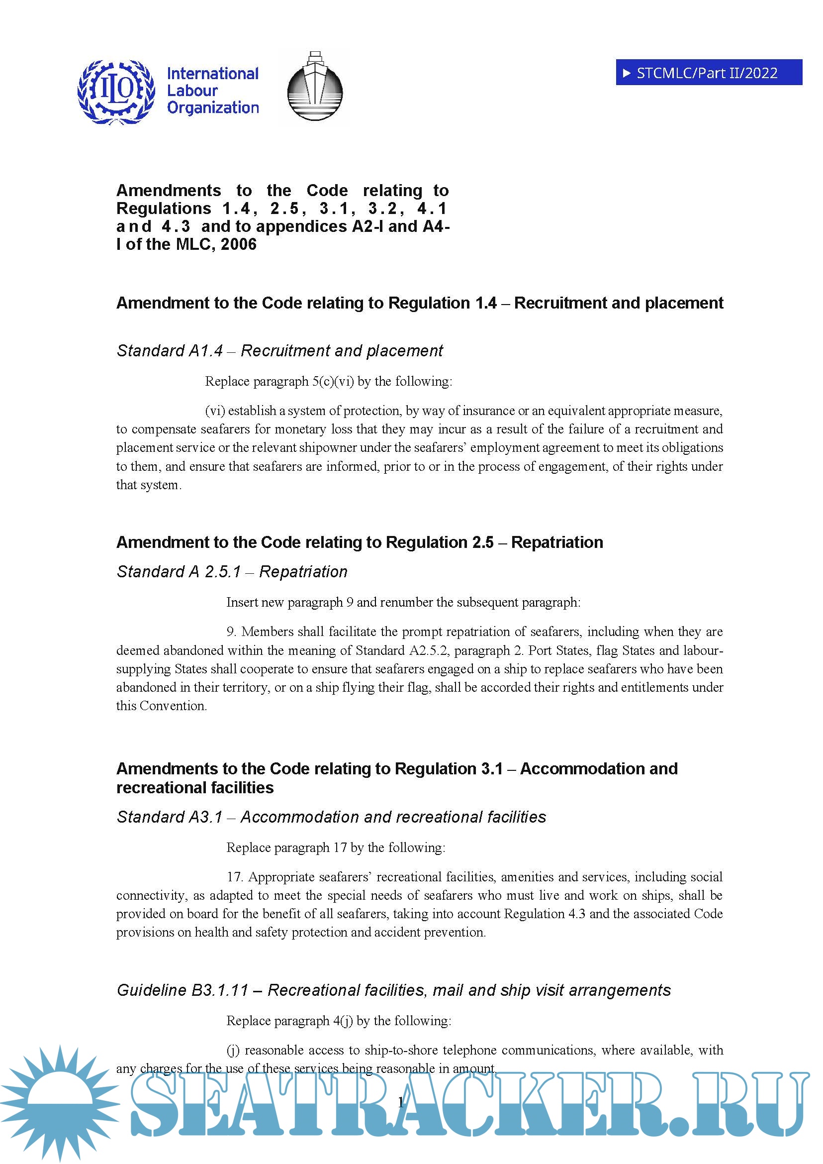 Maritime Labour Convention 2006 - Amendments of 2022
