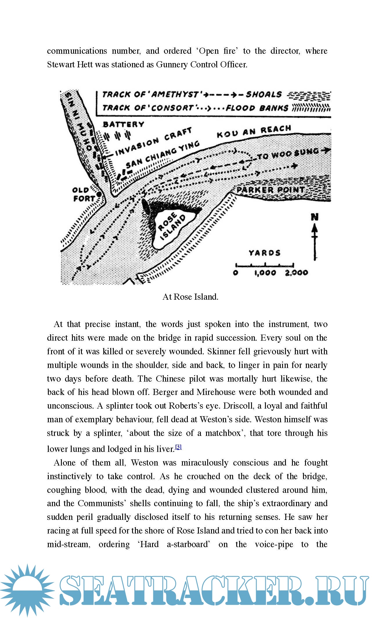 Shells pounded into the ship, killing the commanding officer and destroyed the bridge before the ship grounded on the bank.