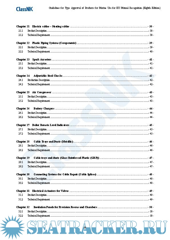 Year: 2022 Language: english Author: ClassNK Genre: Convention (rules) Edition: 8th (September 2022) Format: PDF Quality: eBook Pages count: 107 Description: European Union requires the twelve classification societies recognized by the EU (hereafter described as EU ROs*) to mutually recognize the class certificates for materials, equipment and components issued by other EU ROs, in appropriate cases, in Article 10 of REGULATION (EC) No 391/2009**, which entered into force in June 2009 (hereafter described as EU Mutual Recognition). This guideline sets forth procedures for conducting Type Approval by ClassNK necessary for marine products covered by EU Mutual Recognition and the applicable technical requirements, based on procedures and technical requirements developed by EU ROs.