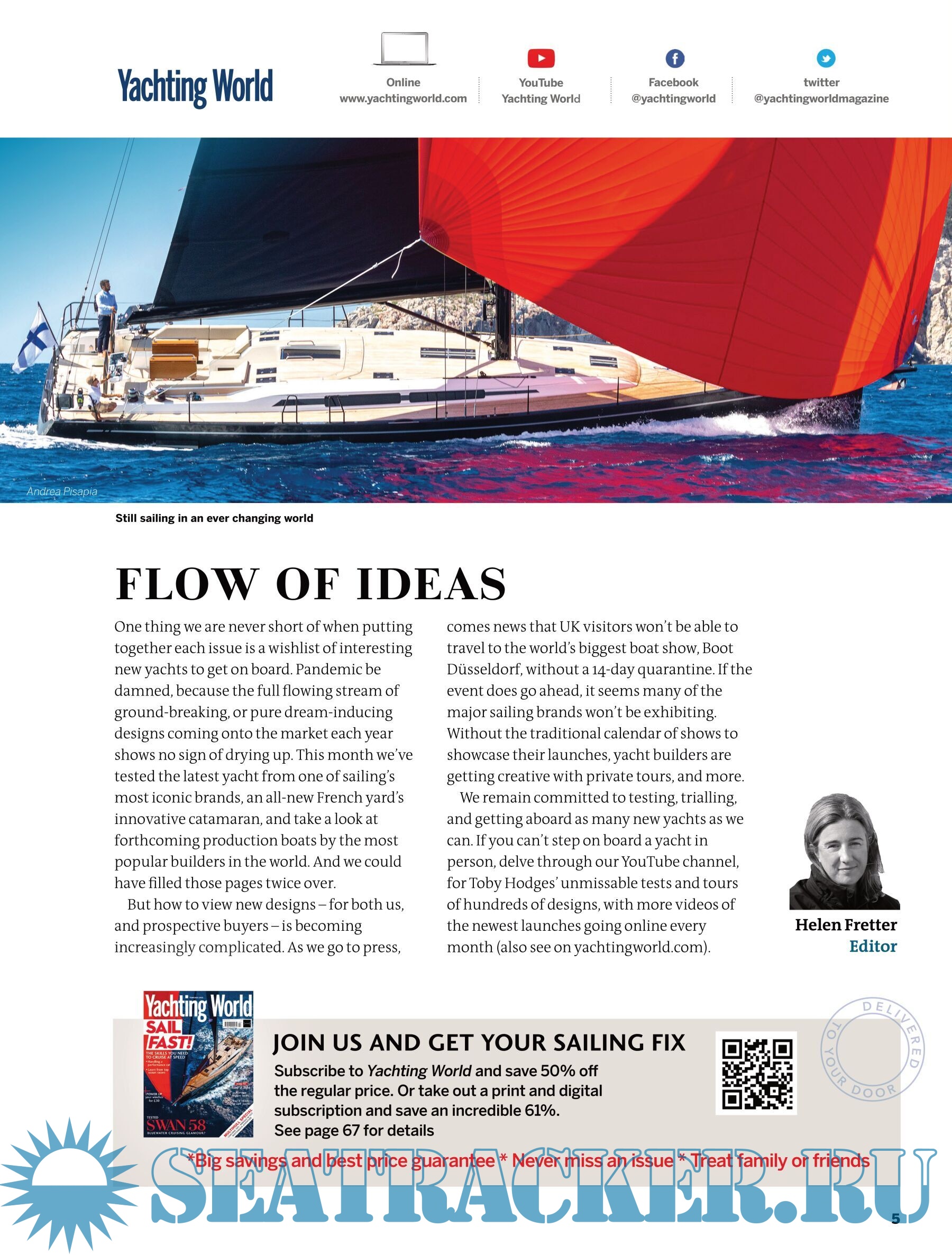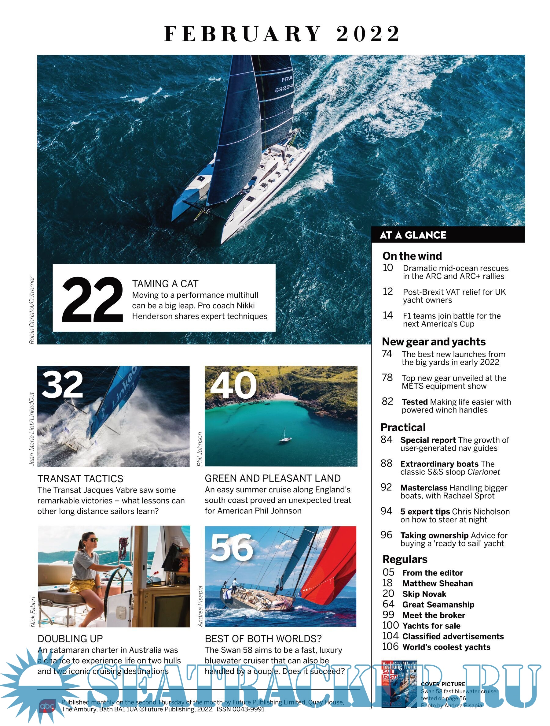 Year: 2022 Language: english Author: Helen Fretter Editor Publisher: Helen Fretter Editor Edition: February 2022 Format: PDF Quality: Photo of pages Pages count: 108 Description: Yachting World has had its finger on the pulse of sailing since 1894 (though some of us joined a little more recently). We reckon we are the most enthusiastic sailing fans in the world: we love boats of all kinds, modern and classic, we like racing and cruising, are fascinated by innovation yet revere tradition, and nothing that floats is too big or too small for our tastes.