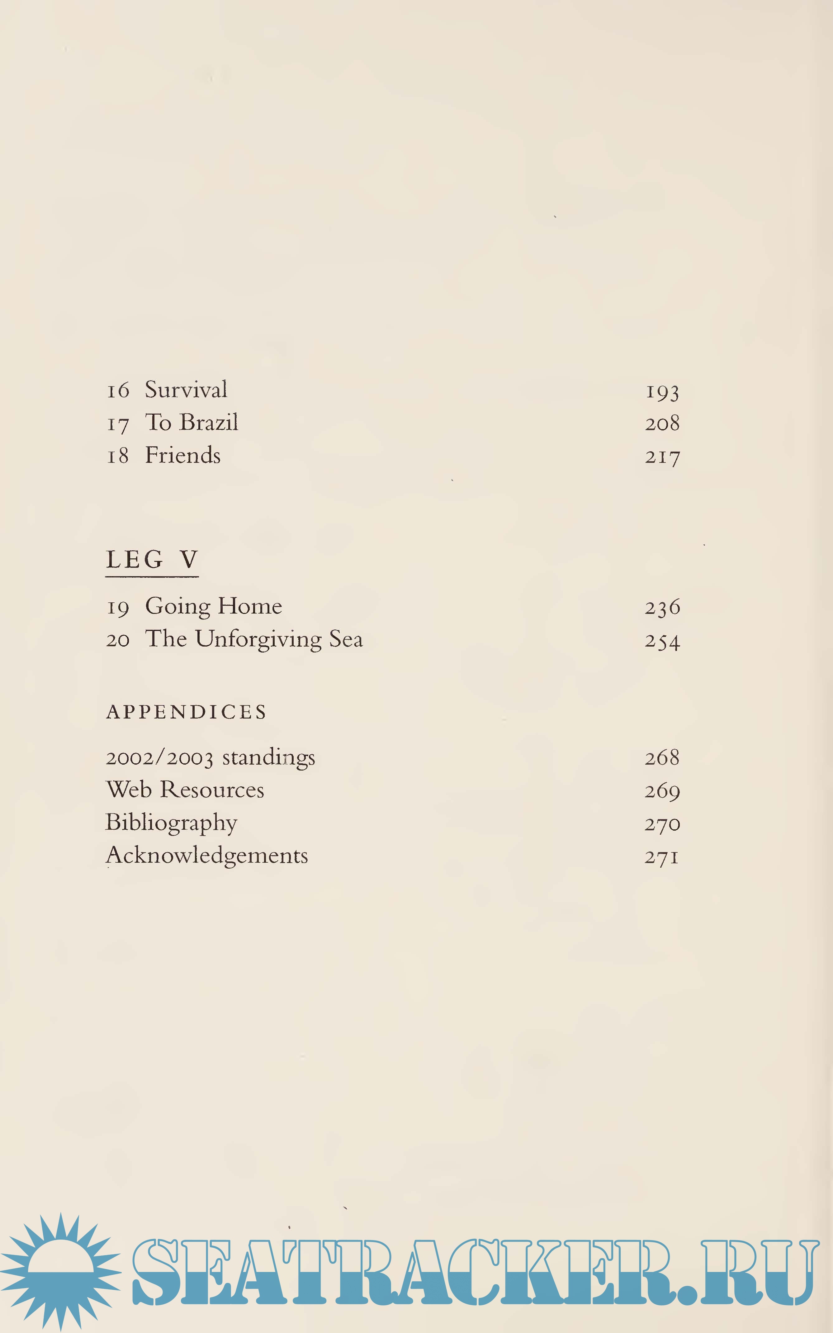 Year: 2004 Language: English Author: Adam Mayers Genre: Textbook Publisher: McClelland & Stewart Edition: First ISBN: O-77IO-5753-9 Format: PDF Quality: Scanned pages Pages count: 296 Description: The biennial Around Alone yacht race is the most thrilling adventure in the world for the sailors passionate enough to undertake it. It's a two-class solo race that starts and ends in Newark, New Jersey, with stops in England, South Africa, New Zealand, and Brazil, and it is as tough in its way as the non-stop race, the Vendee Globe. In 2002, thirteen sailors competed, some of them professional sailors, well funded by corporate sponsors, and some of them adventurers who sacrificed almost everything to enter the race. Among the adventurers was Derek Hatfield, a former fraud-squad Mountie, whose forty-foot "Spirit of Canada had cost him almost everything he had. The race takes sailors through the wild storms of the Bay of Biscay, the frustrating and infamous Doldrums, the angry Southern Ocean, and the treacherous seas off Cape Horn, the southern tip of South America. All of them dangerous waters that stretched the sailors' abilities to the limit - and beyond. Hatfield's "Spirit of Canada became the plucky Little Boat That Could when it lost its mast in rounding Cape Horn. In this nail-biting account of the race, Adam Mayers brings to life the joys and the agonies of racing alone - and the dreams that drive these men and women to sail around the world solo. Additional info: PDF & epub