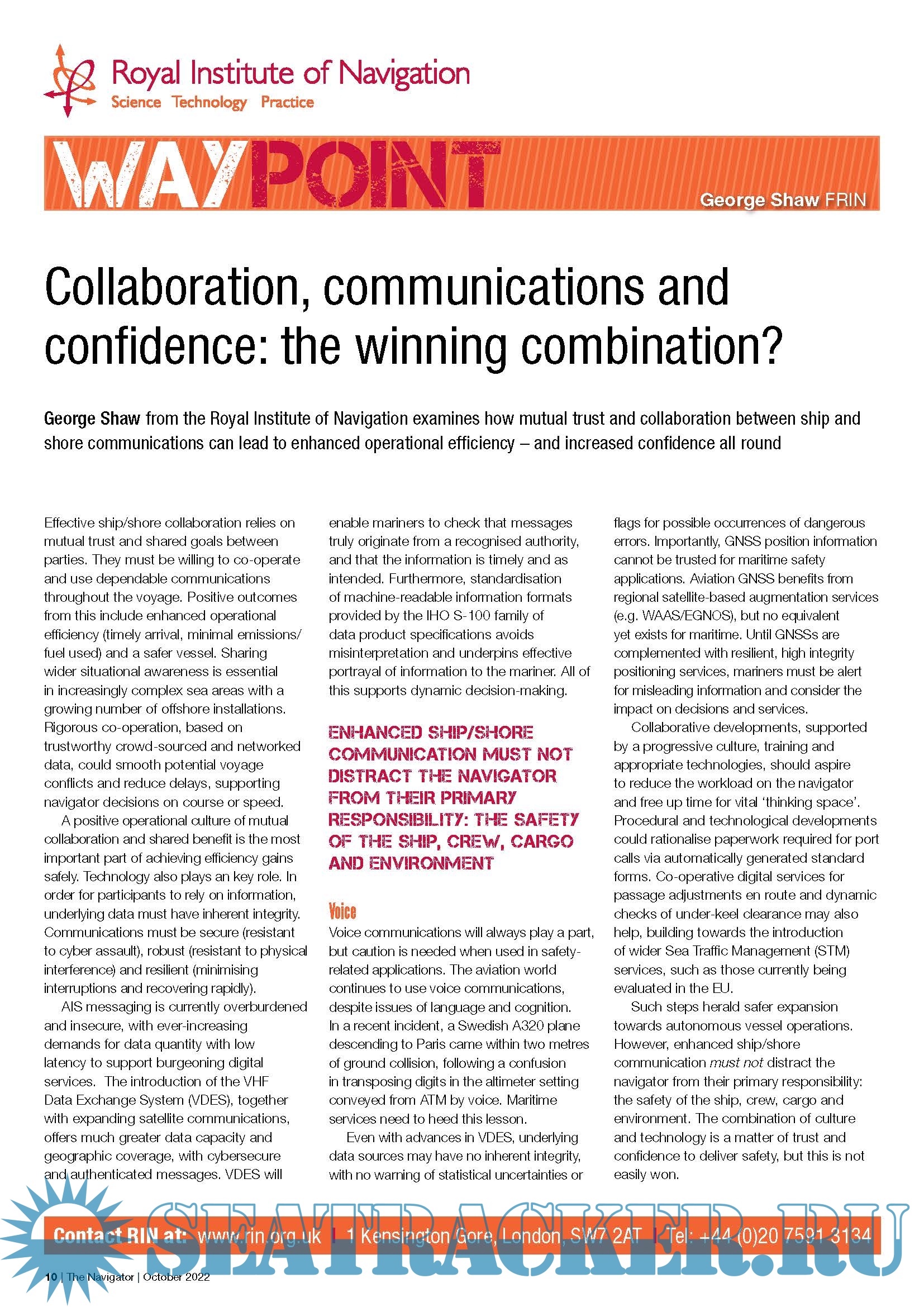 Description: The Navigator a publication from The Nautical Institute that champions the role of today's professional marine navigators.