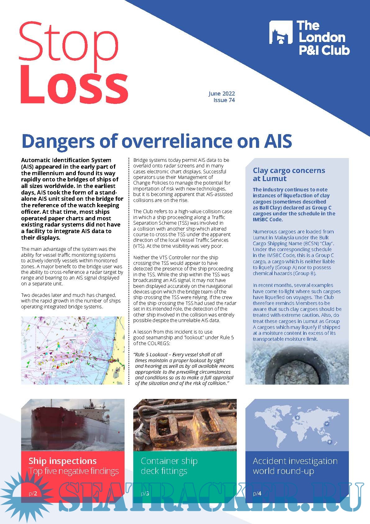 2. StopLoss 74. The London P&I Club highlights the dangers of overreliance on AIS. Container Ship Deck Fittings. Accident Investigation World Round -Up