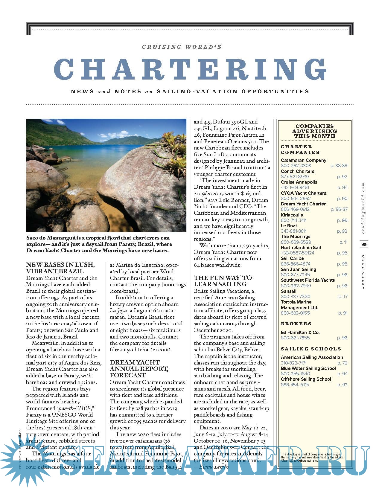 Year: 2020 Language: english Author: Mark Pillsbury - Editor Genre: Periodical (magazine) Publisher: A Bonnier Corporation Company Edition: April 2020 Format: PDF Quality: Photo of pages Pages count: 150 Description: Cruising World is your passport for exploring the world's coastlines and oceans while voyaging under sail. Its contributors inspire and entertain through stories, pictures and videos that underscore the beauty and adventure of sailing, while providing instruction on the disciplines of seamanship, navigation and boat handling.