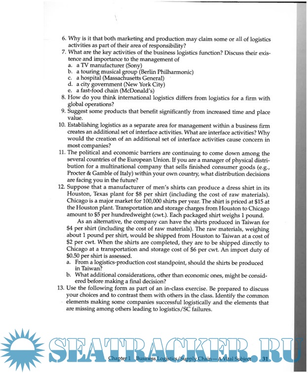 Year: 2004 Language: english Author: Ronald H. Ballou Genre: Textbook Publisher: Pearson Education Ltd, Upper Saddle River, New Jersey. Edition: Fifth ISBN: 0-13123010-7 Format: PDF Quality: OCR without errors Pages count: 815 Description: This release, covers the planning, organizing, and controlling of activities like transportation, inventory maintenance, order processing, purchasing, warehousing, materials handling, packaging, customer service standards, and product scheduling. The book is specifically designed to help learners solve the actual problems that they will encounter in today's marketplace. In so doing, it provides the basic decision-making tools and concepts used for finding cost reduction and strategic opportunities. A six-part organization covers introduction and planning, customer service goals, transport strategy, inventory strategy, location strategy, and organization and control. It is a valuable material for logistics analysts, supply chain analysts, logistics managers, distribution analysts, logistics planners, directors of logistics, directors of distribution, supply chain consultants, logistics consultants, industrial engineers, operations analysts, operations managers, and all members of a supply chain. It comes with a CD that includes various software packages useful to solve a number of logistics problems and case studies discussed in each chapter. A CD icon will appear with the software package designation where the problem analysis is assisted by one of these software programmes. If no icon appears, hand calculation is assumed. This release is the correct one, while a previous attempt to upload the material with the same ISBN but with the coverpage in Spanish, was unsuccessful, and you should not pay any attention to it!!!!!