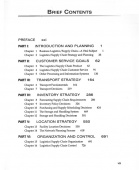 A six-part organization covers introduction and planning, customer service goals, transport strategy, inventory strategy, location strategy, and organization and control.