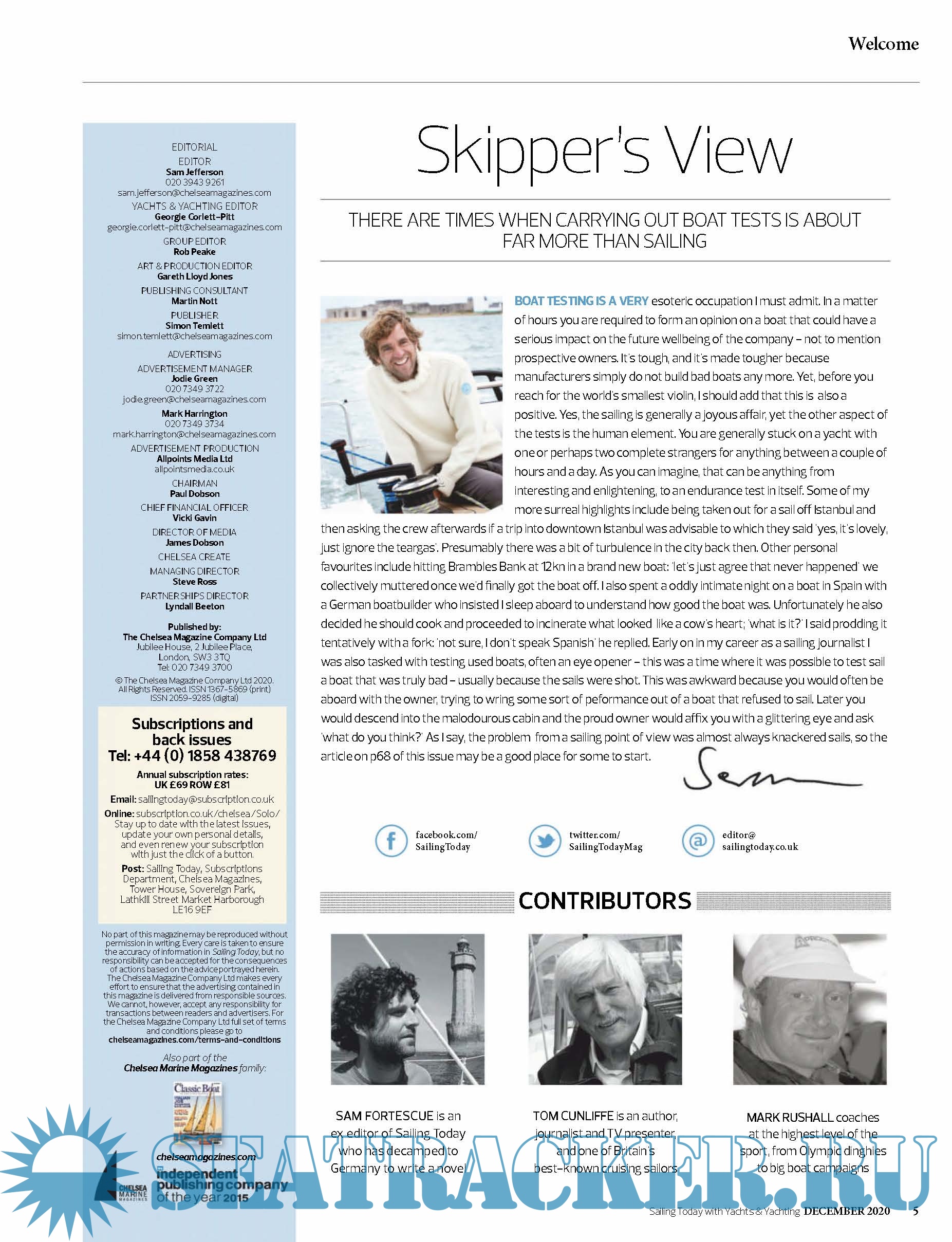 Year: 2020 Language: english Author: (Editor) Sam Jefferson Genre: Periodical (magazine) Publisher: The Chelsea Magazine Company ltd. Edition: December 2020 Format: PDF Quality: Photo of pages Pages count: 100 Description: Sailing Today is the magazine for hands-on cruising sailors whose love of sailing takes them around the British Isles, across the Channel and further, to the blue waters of the wider world.Offering a wealth of practical advice and a dynamic mix of in-depth boat, gear and equipment news, Sailing Today is written cover to cover by sailors, for sailors. Since its launch in 1997, the magazine has sealed its reputation for essential sailing information and advice.Since we launched in 1997 we have sealed our reputation as THE magazine for essential sailing information and expert advice.ST is written by sailors for sailors, from our new and used boat tests, to our step by step practical articles and in-depth gear tests, or our inspiring cruising tales from home and abroad.Whatever you want to know – from which GPS to buy, or the best way to install central heating – Sailing Today provides the best answers.With our fantastic on-board gear tests, the latest boat tests and regular advice about seamanship and navigation, we deliver practical back-up for those who enjoy using their boats and want to get the best from them.