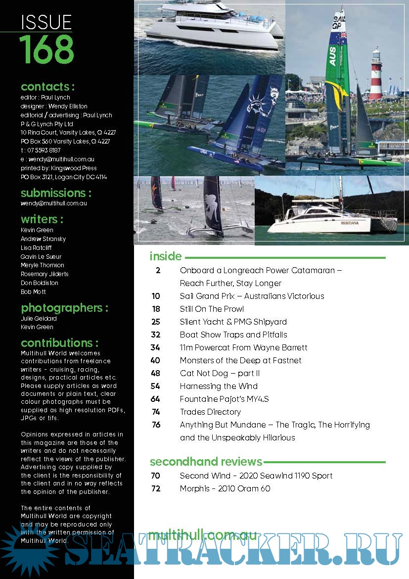 Year: 2021 Language: english Author: Paul Lynch Genre: Periodical (magazine) Edition: September, October 2021 Format: PDF Quality: Photo of pages Pages count: 84 Description: Multihull World is an Australian-based specialist publication devoted to multihull enthusiasts - catamarans and trimarans, offshore, off-the-beach, power, racing and cruising.