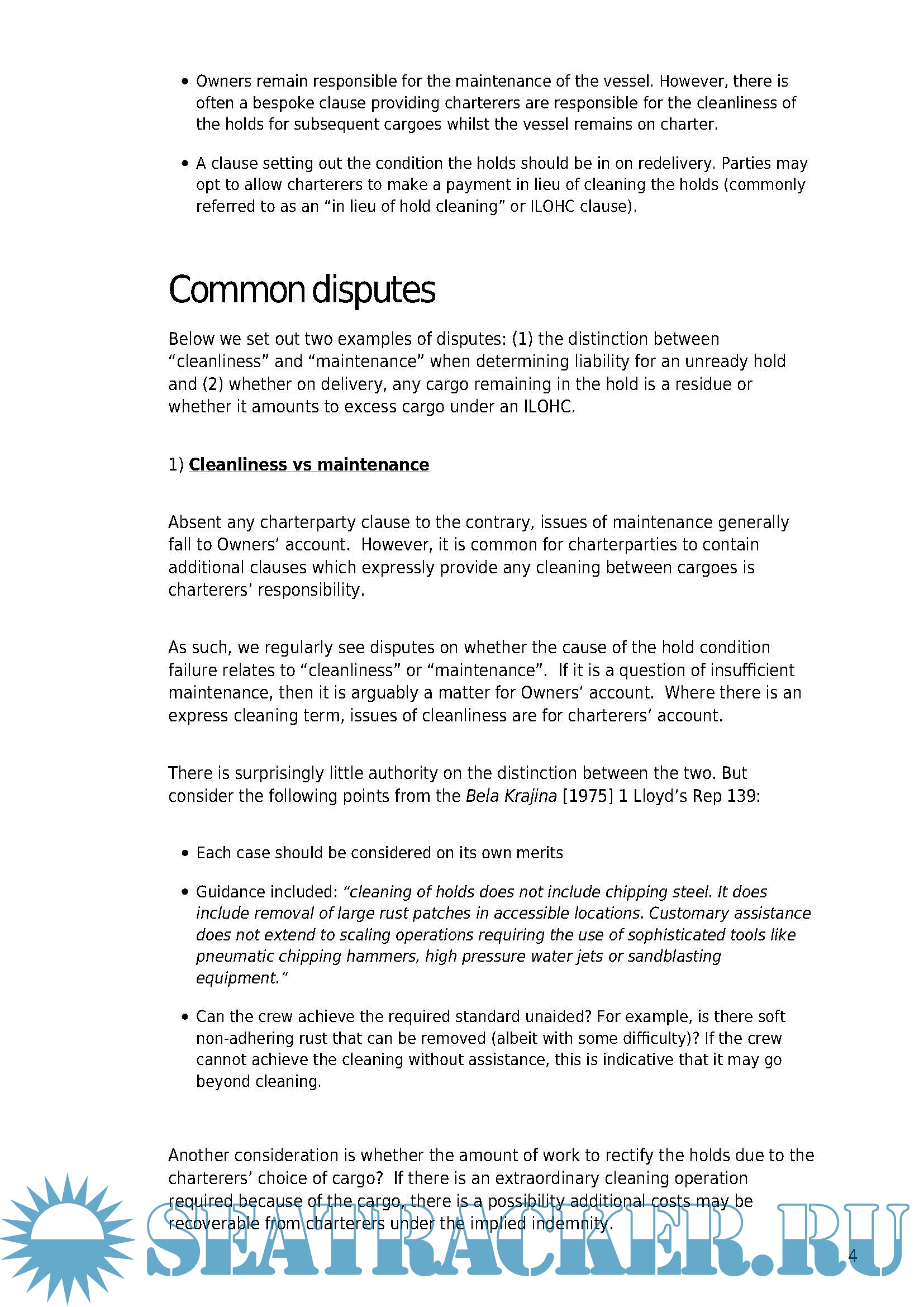 Loss Prevention Bulletin, Cargo Hold Cleaning - West of England P&I [2017, PDF]