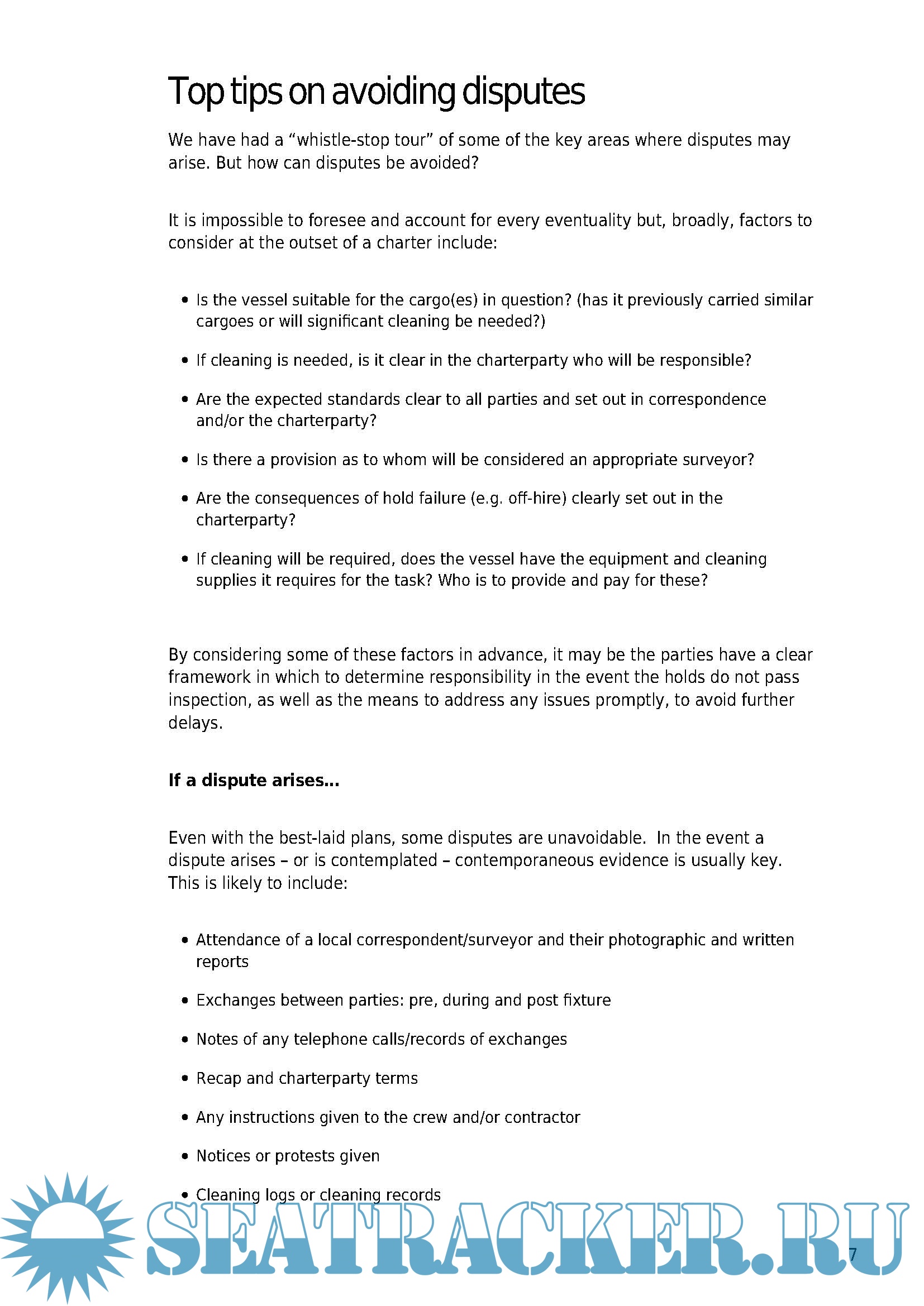 in avoiding and dealing with these types of dispute.