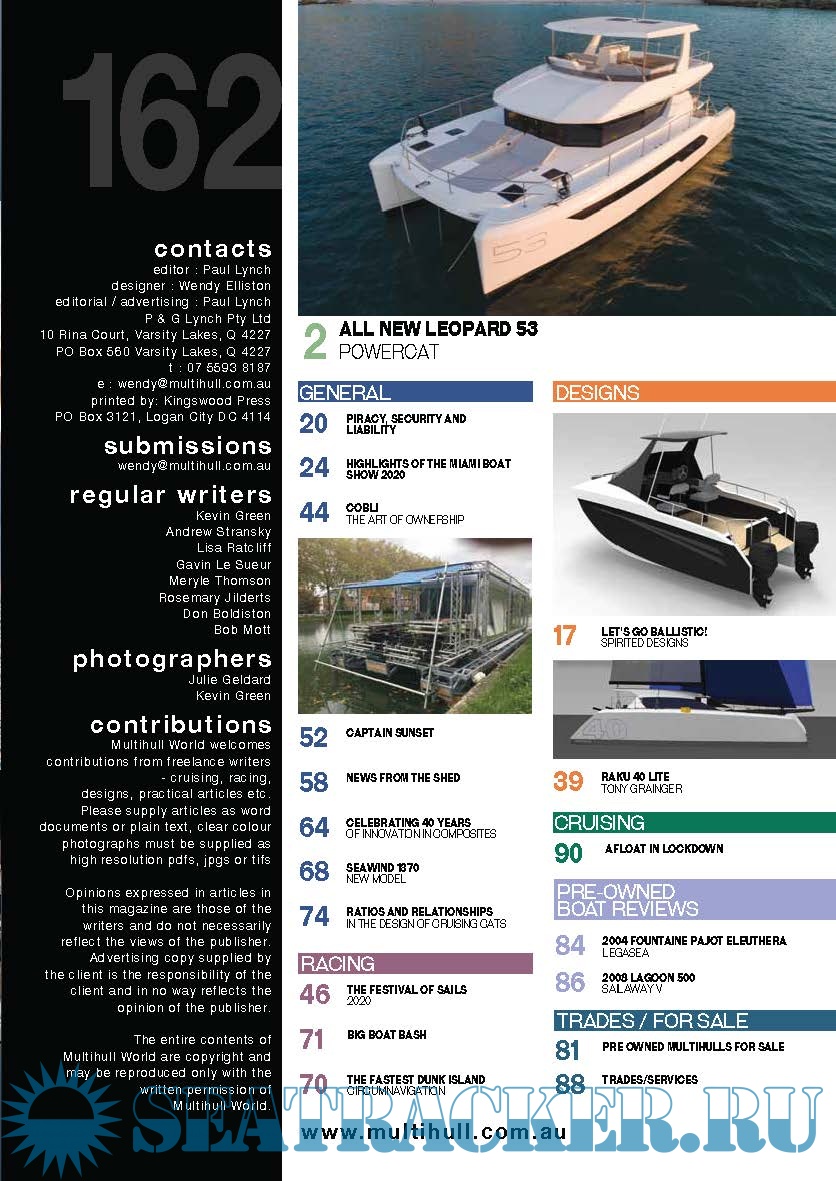 Year: 2020 Language: english Author: Paul Lynch Genre: Periodical (magazine) Edition: September, October 2020 Format: PDF Quality: Photo of pages Pages count: 100 Description: Multihull World is an Australian-based specialist publication devoted to multihull enthusiasts - catamarans and trimarans, offshore, off-the-beach, power, racing and cruising.