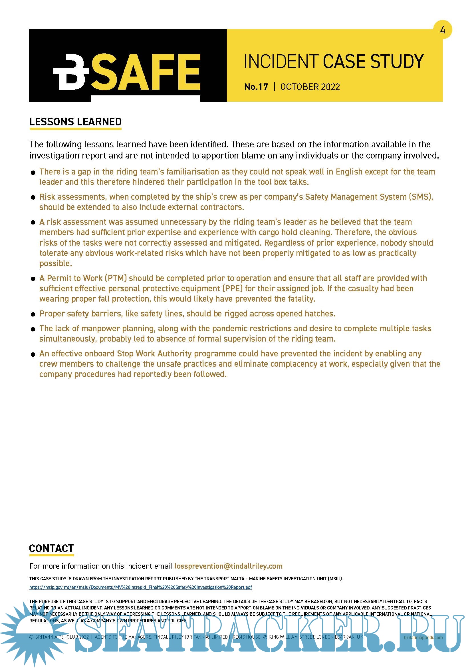 BSafe: Incident Case Study No.19 (June) - Britannia P&I Club [2023, PDF]