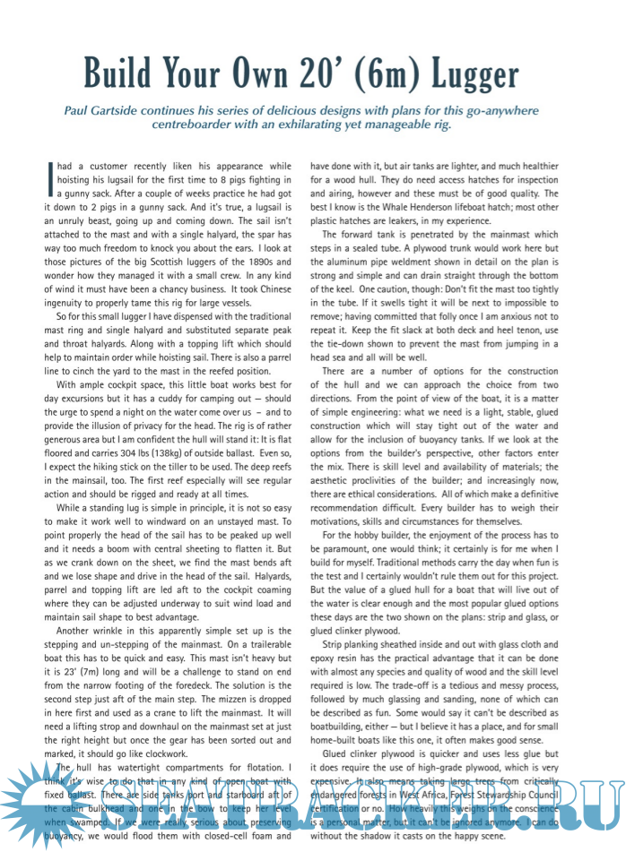 Year: 2010 Language: english Author: watercraft Genre: Periodical (magazine) Format: PDF Quality: Unknown Pages count: 84 Description: watercraft magazine no 80with plans for a centreboard lugger - if you would like more issues please message