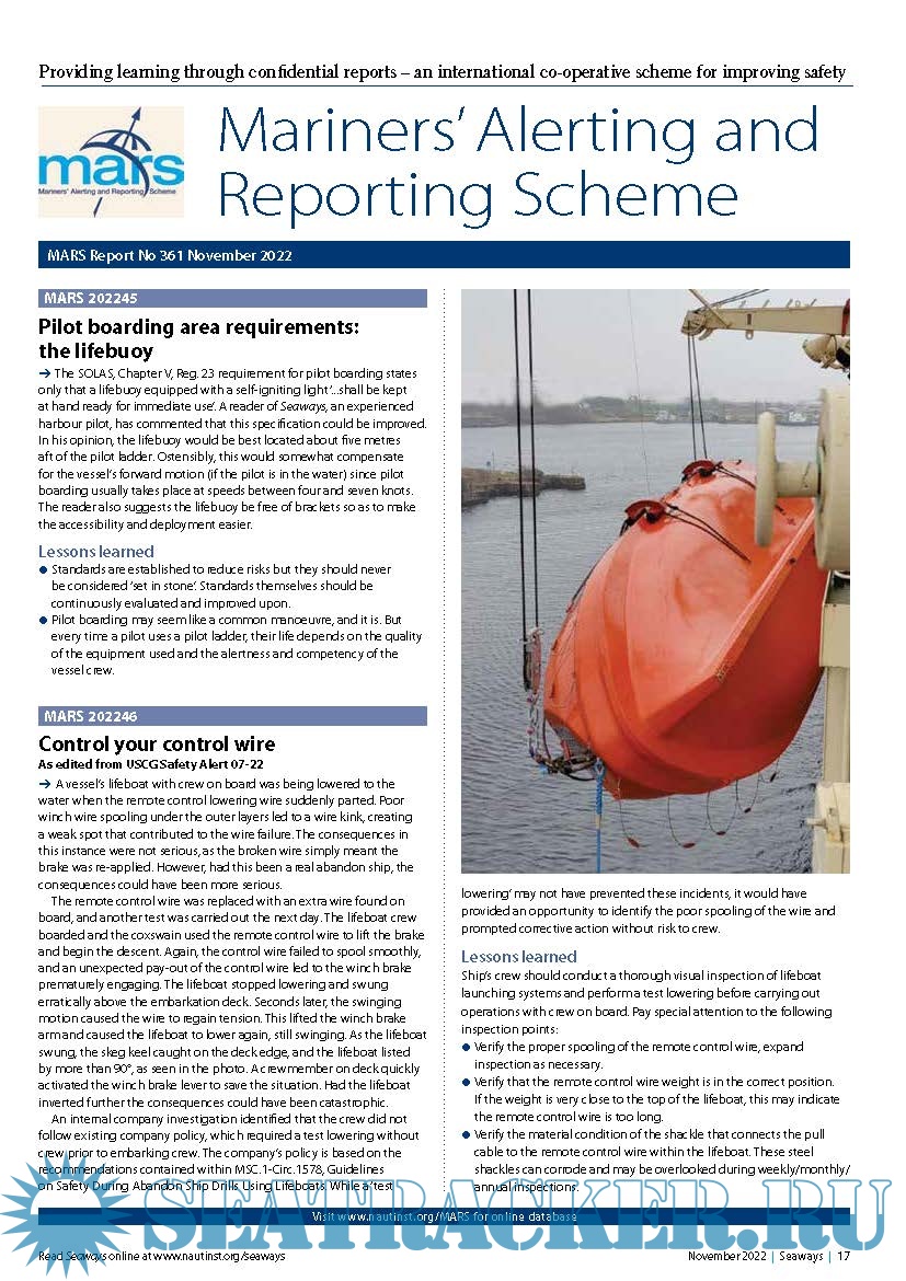 Mariners’ Alerting and Reporting Scheme (MARS) Report (November) - The Nautical Institute [2023,…