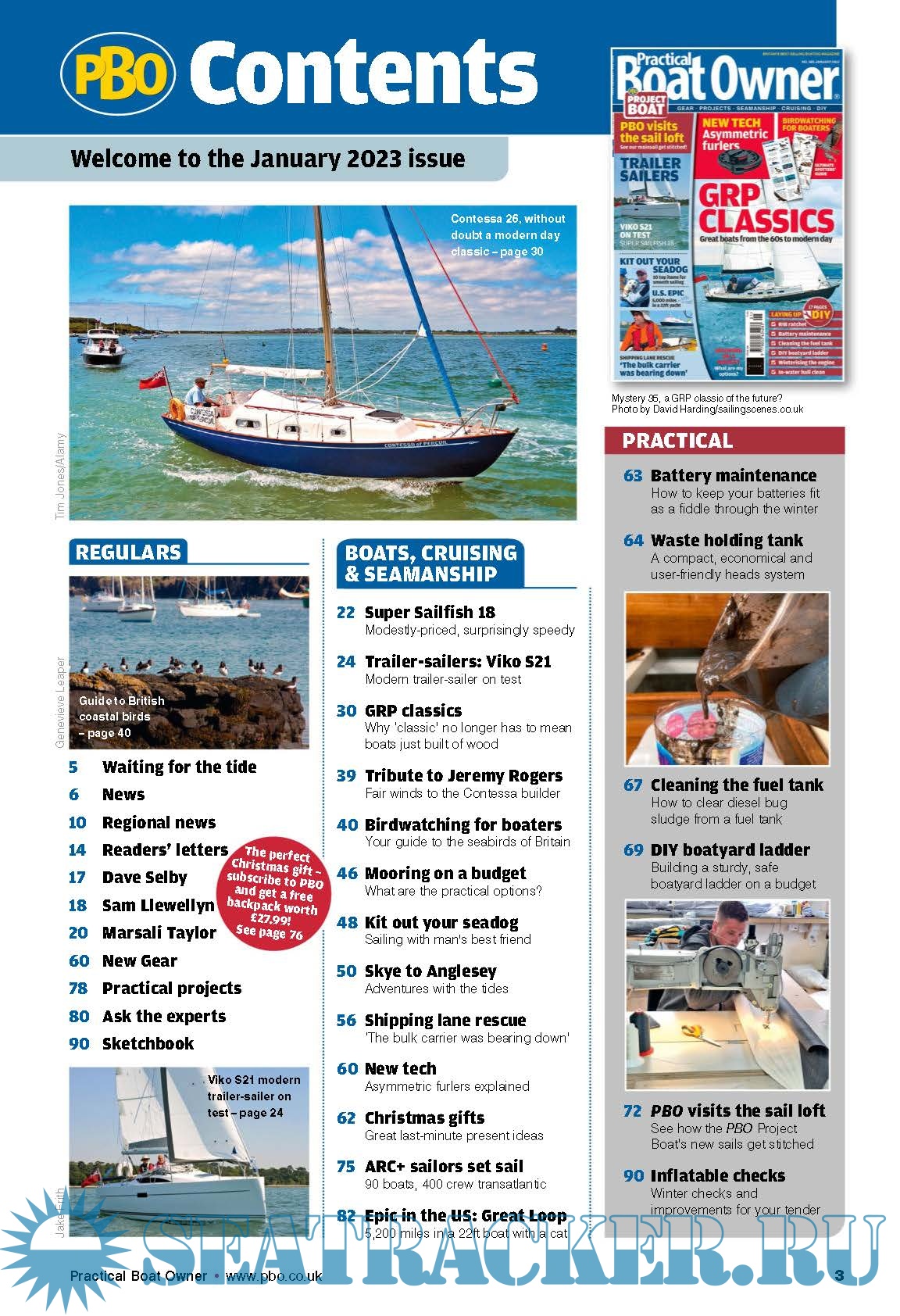Year: 2023 Language: english Author: Alison Wood Genre: Periodical (magazine) Publisher: Future PLC Edition: January 2023 Format: PDF Quality: Photo of pages Pages count: 92 Description: Practical Boat Owner is a British magazine about boats. It is published by IPC Media. It is a magazine that includes boat maintenance and repairing from baking bread on your boat to replacing your sprayhood windows. Also includes the latest news of sailing and motor boats from around the world