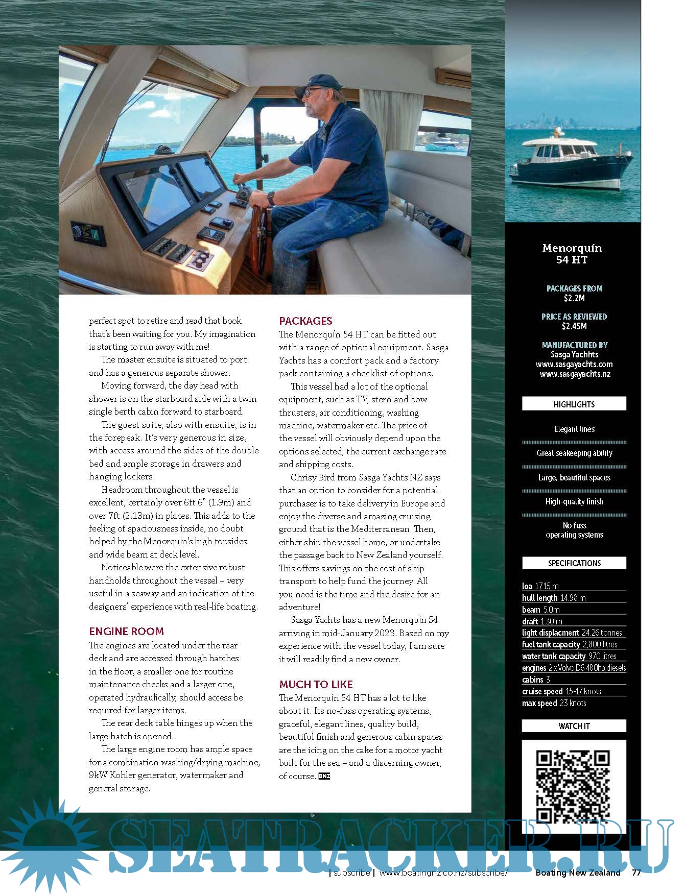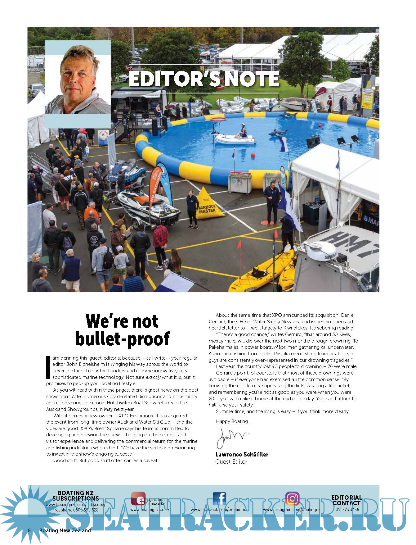 Year: 2022 Language: english Author: Lawrence Schäffler - Editor Genre: Periodical (magazine) Publisher: Tim Porter Edition: December 2022 Format: PDF Quality: Photo of pages Pages count: 164 Description: Boating NZ is New Zealand's premier marine title devoted to putting its readers behind the wheel of the latest trailerboats, yachts and launches to hit the market. It inspires with practical content and cruising adventures, leads the fleet with its racing coverage and is on the pulse of the latest maritime news and innovation.