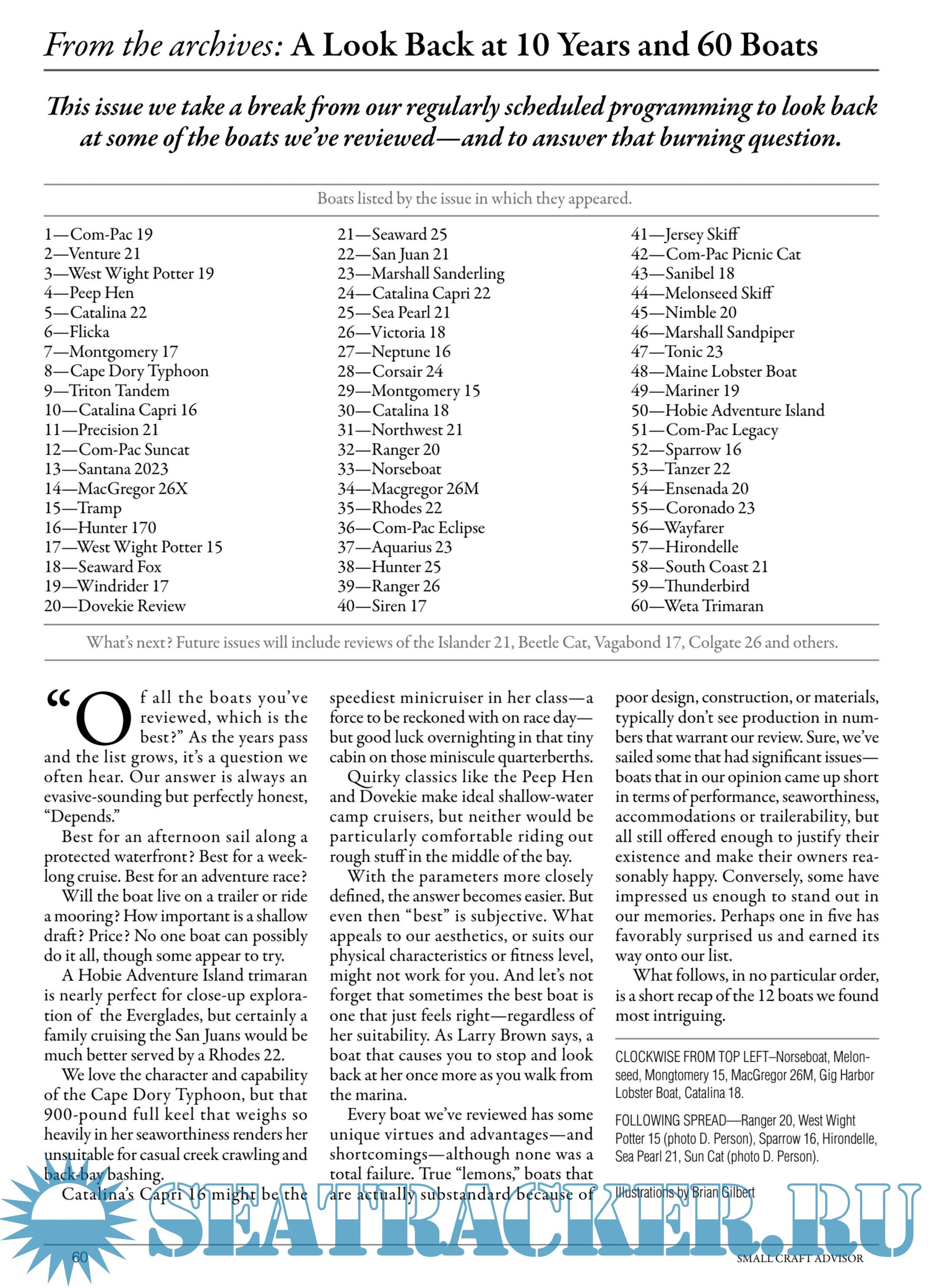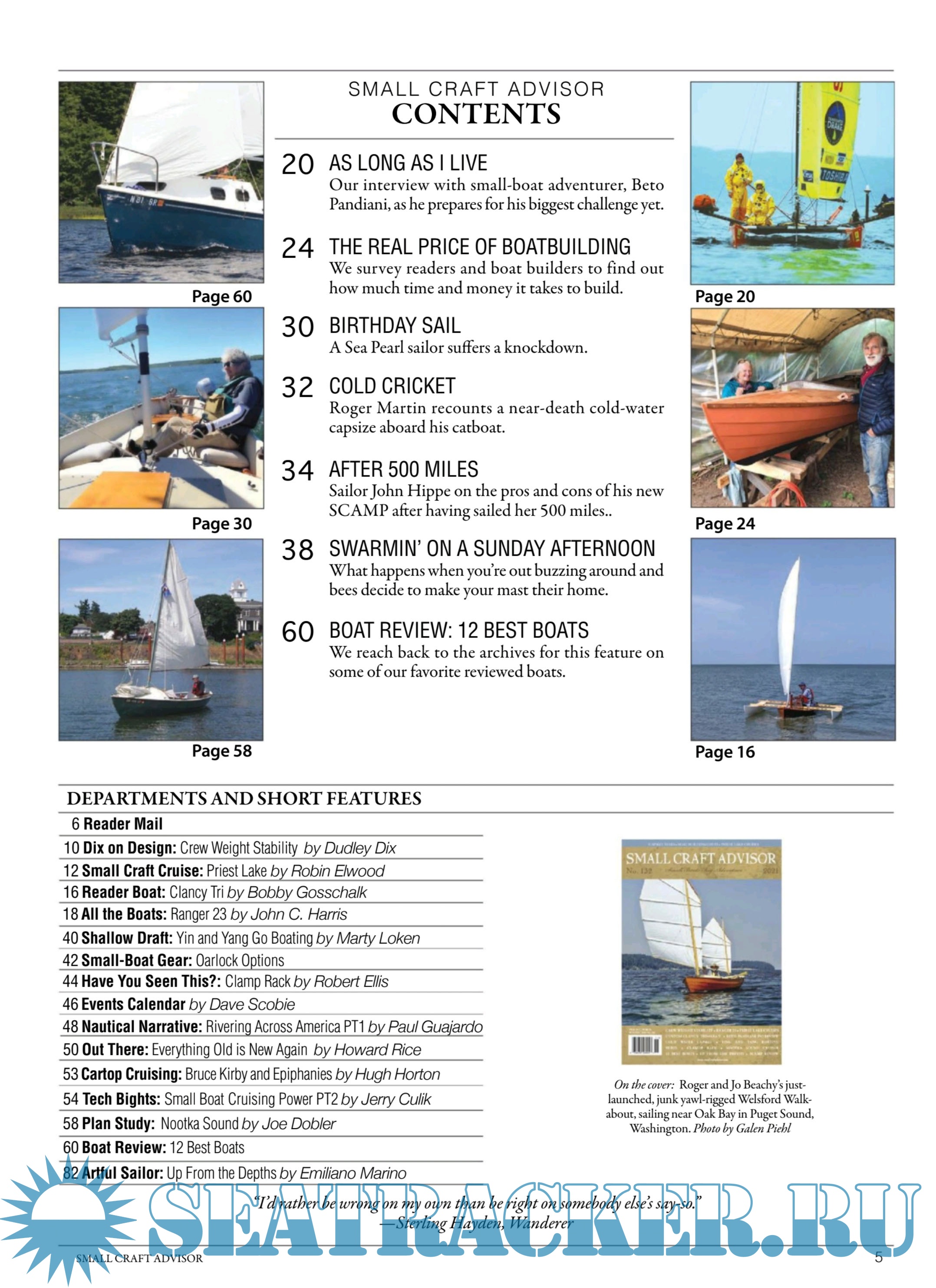 Year: 2021 Language: english Author: Small Craft Advisor Inc. Genre: Periodical (magazine) Publisher: Small Craft Advisor - November, December 2021 Edition: Small Craft AdvisoNovember, December 2021 Format: PDF Quality: Photo of pages Pages count: 84 Description: Small Craft Advisor Magazine