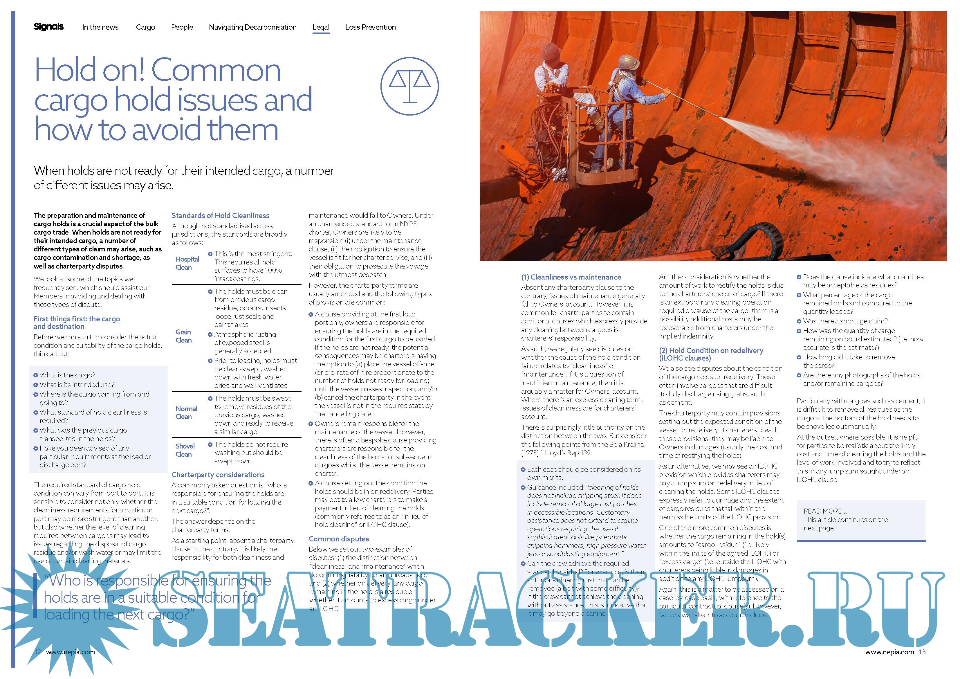 Signals is unique in the loss prevention field. Not only does it summarise recent case law, report on changesin legislation and identify problematic commodoties, but it also examines the implications and consequencesof these developments for shipowners and operators.