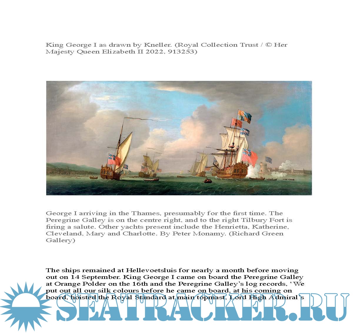 Description: From the time of the Restoration of Charles II, when he returned to England from Breda and was presented with the yacht Mary by the burgomaster of Amsterdam, Royal yachts began to be defined as such in England and built with that special purpose in mind. They were built luxuriously and used for royal visits to the fleet, for diplomacy and for racing and cruising for pleasure.