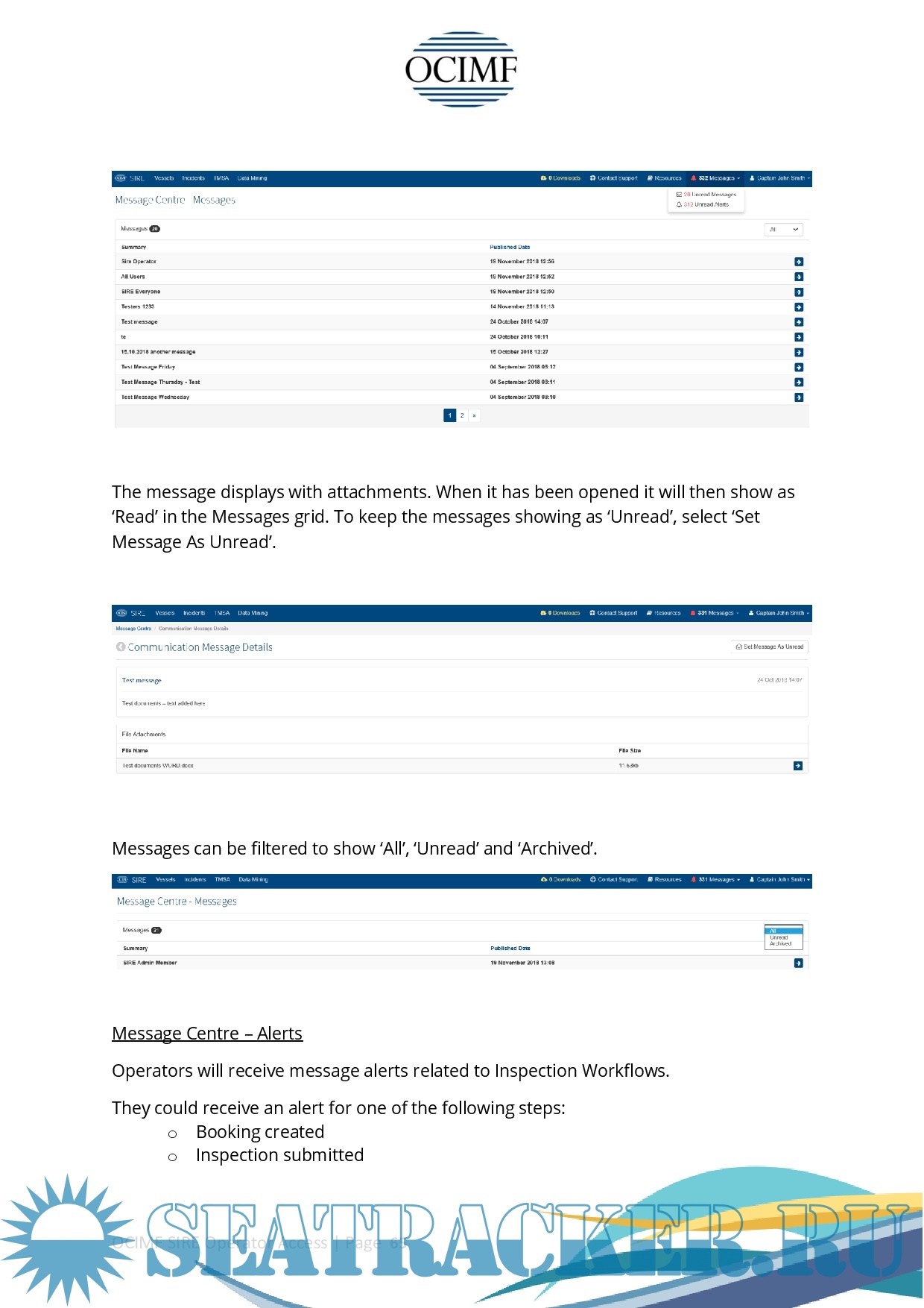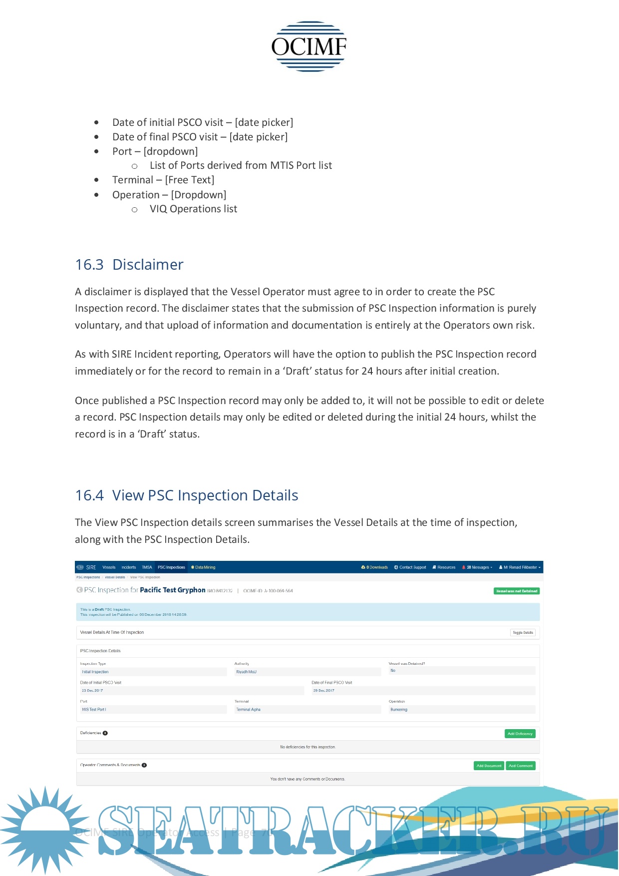(www.ocimf-sire.com/comments). This panel lists all the ship inspections for an operator’s