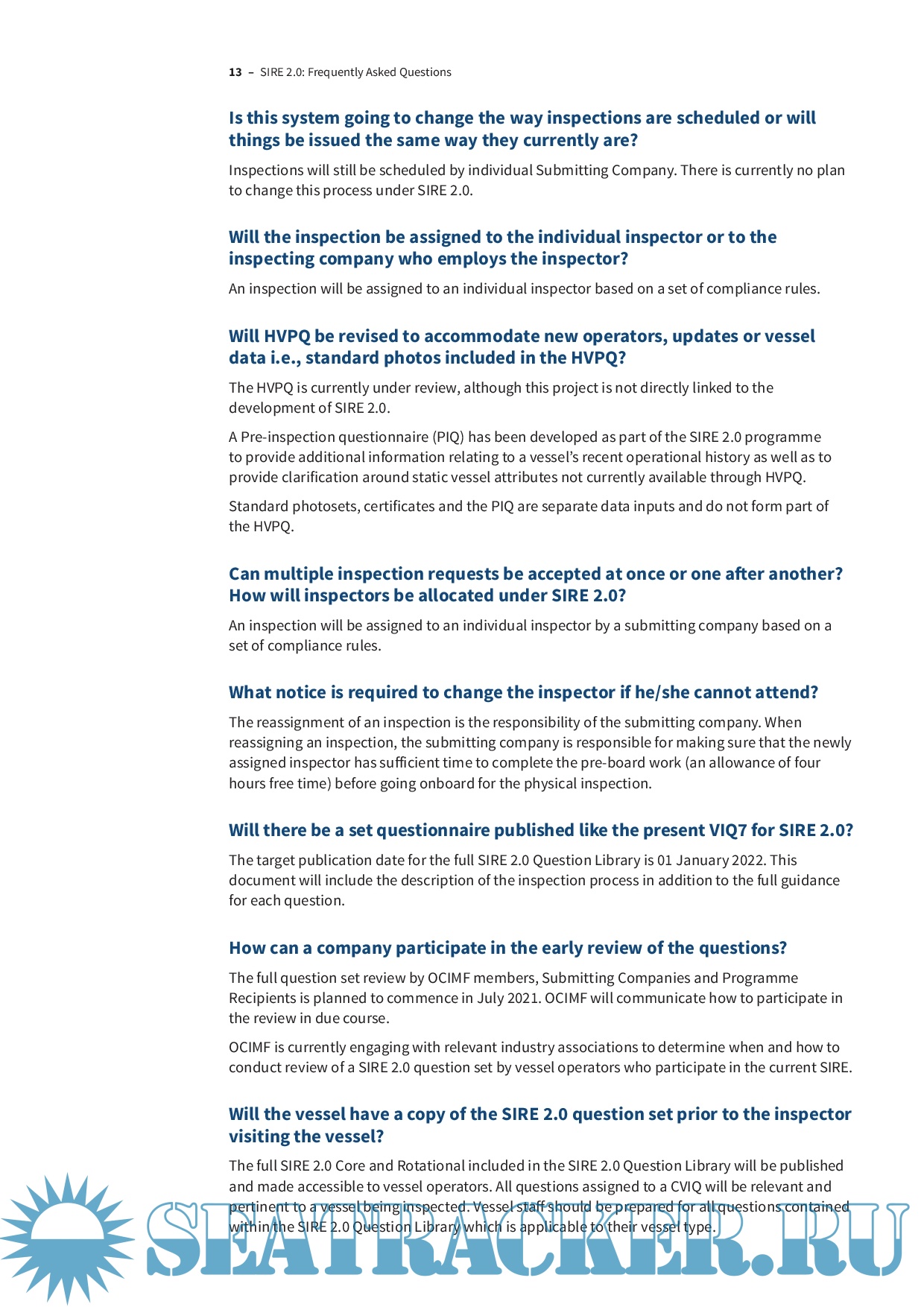OCIMF - SIRE 2.0 - Frequently Asked Questions