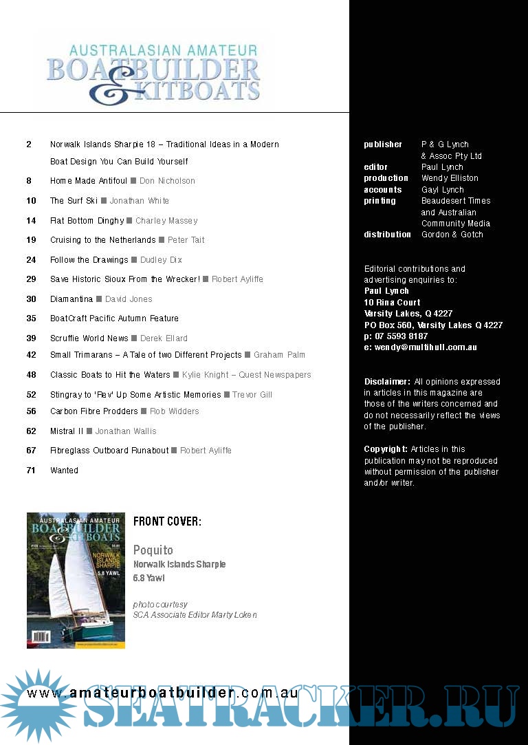 Description: Australian Amateur Boat Builder Magazine is an Australian-based specialist publication devoted exclusively to Amateur Boat Building enthusiasts